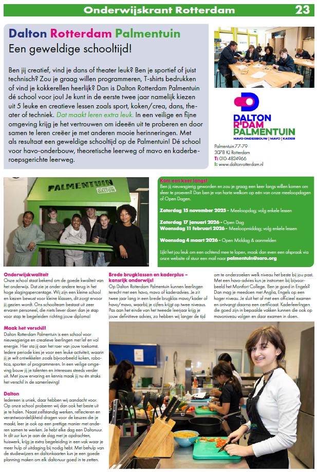 Het schoolgebouw van Dalton Rotterdam Palmentuin staat vlakbij tram- en bushaltes en bij winkelcentrum Keizerswaard. Het interieur is kleurrijk en gezellig. Buiten genieten onze leerlingen bij mooi weer graag van het schoolplein. Kom langs!